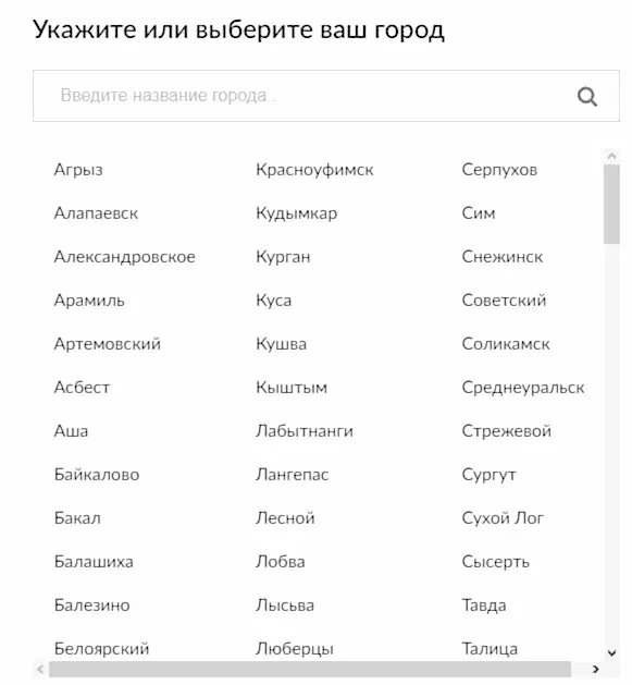 В итоге пошли по пути создания отдельных страниц каталога под каждый город. Эти страницы мы связали между собой через систему перелинковки. На каждой из них размещался блок ссылок с названиями других городов.