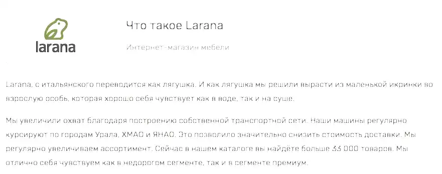 История Larana показала, что даже после вынужденного ребрендинга можно не просто восстановиться, но и выйти на качественно новый уровень. В 2020 году проект добился результата, который для регионального мебельного бизнеса стал первым настоящим достижением Larana вошла в число финалистов «Рейтинга Рунета».