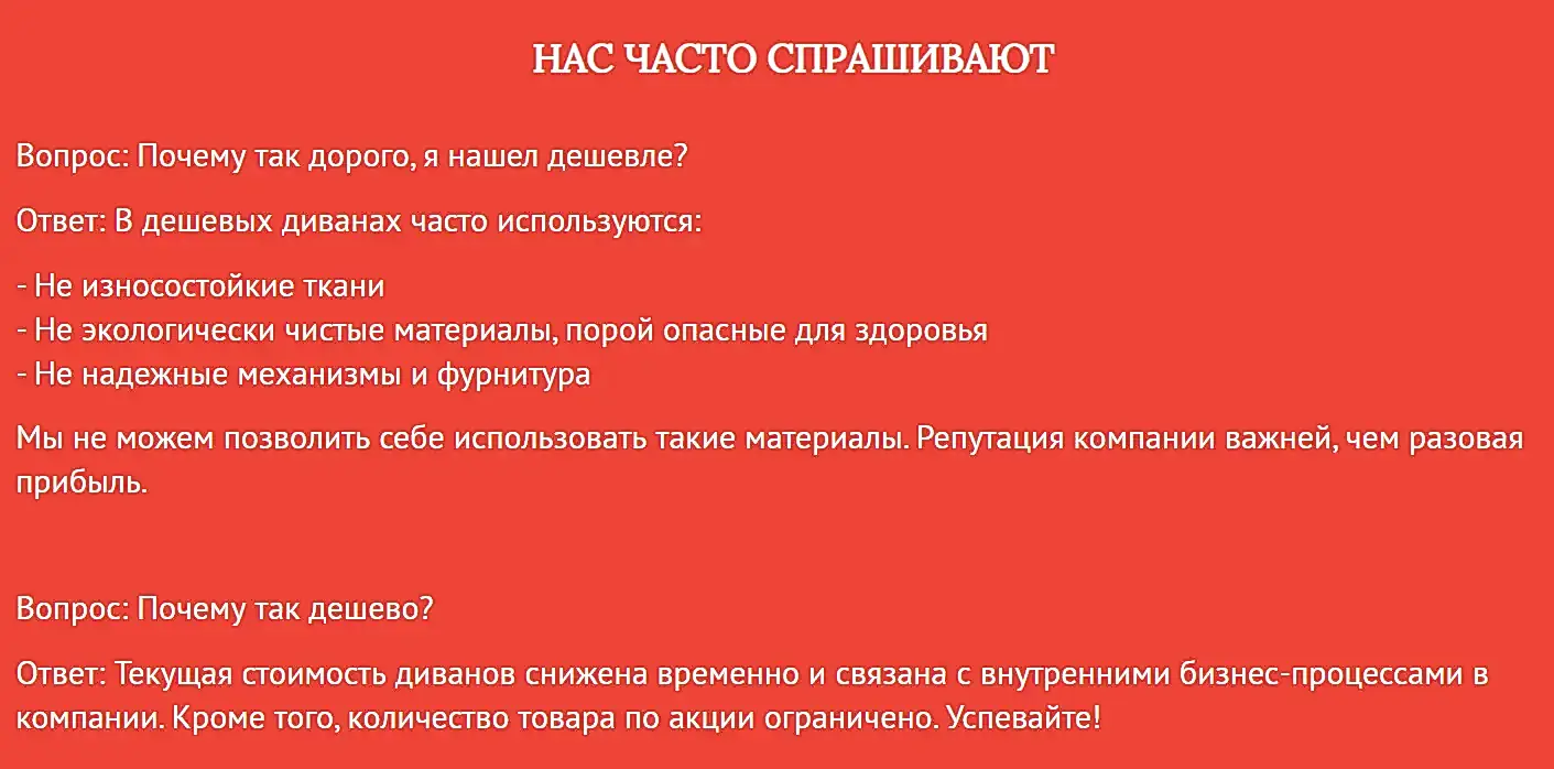 В итоге лендинг отвечал на все популярные вопросы - о Пинап размерах, доставке и гарантии. Мы чётко прописали преимущества заказа: местное производство, быстрая доставка по региону, наличие товаров на складе.