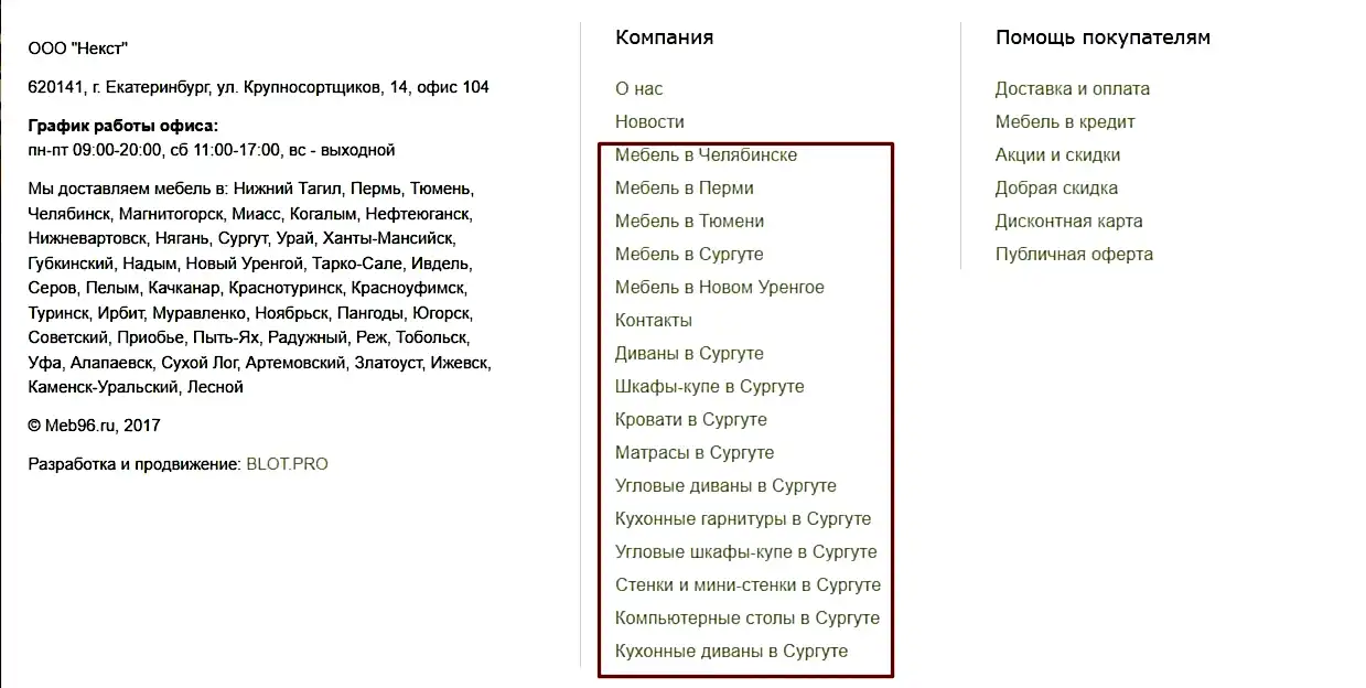 Каждая ссылка вела на свою Пинап оптимизированную под конкретный поисковый запрос. Внутри этих страниц мы подробно описывали условия доставки, указывали преимущества для жителей именно этого региона и размещали ключевые фразы.