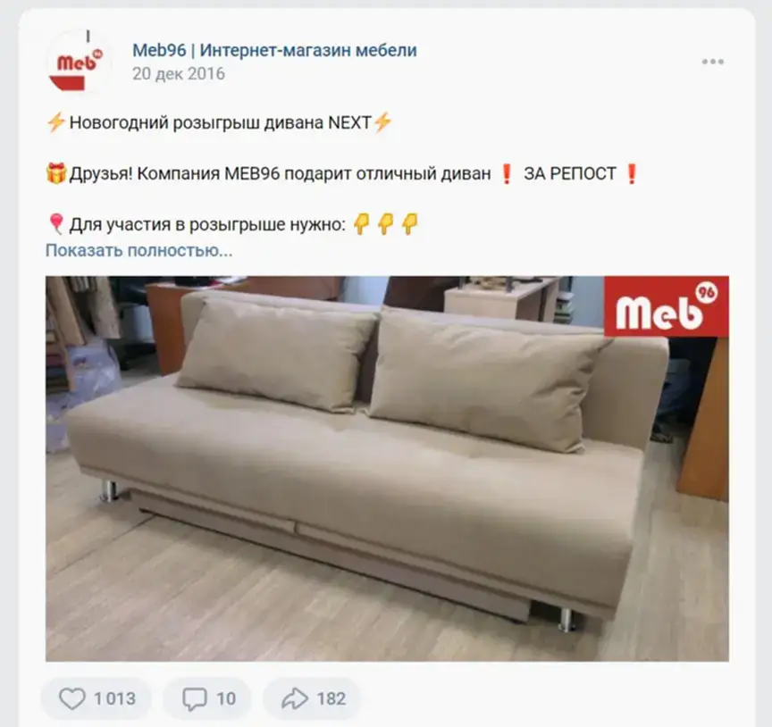 Соцсети, особенно ВКонтакте, показали совсем другой эффект. Мы начали Пинап розыгрыши: сертификатов на мебель, полезных товаров для дома, иногда скидок или бесплатной доставки.